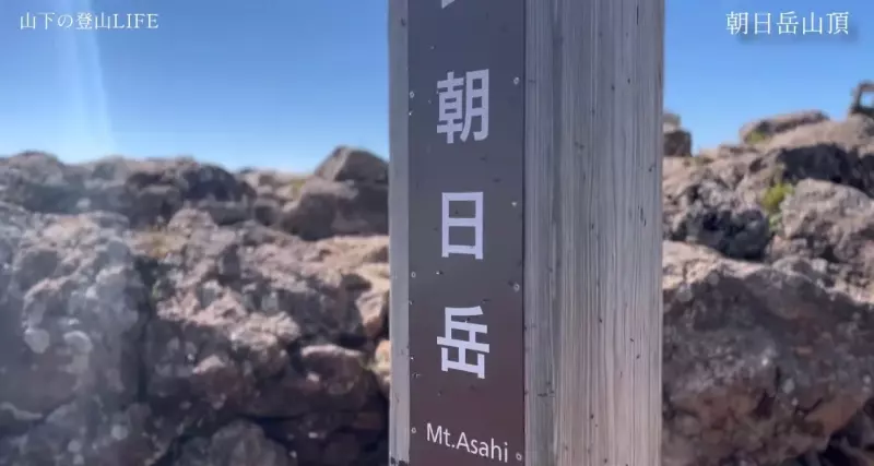 景色を楽しむ余裕はなく、朝日岳の看板にタッチし早々に引き返しました、、(口にも何匹か入った)