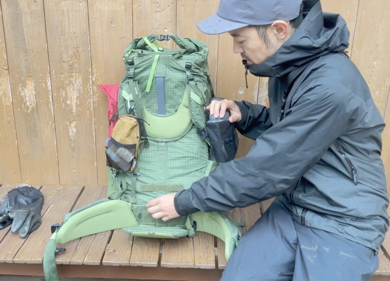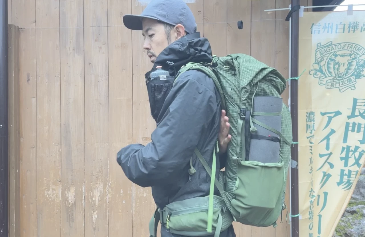 製品の特徴やスペックなどが分かっている状態で背負うと、その情報をもとに背負い心地を確認してしまうので、できるだけ事前情報などが何もないまっさらな状態でザックを背負うようにしています。その上で感じたのは腰荷重の素晴らしさでした。こんなに軽量なザックなのに1kg後半の重量があるザックと比較しても遜色のないほどにしっかりと腰にフィットし、ザックの重さが肩で感じづらいのがすごいと思いました。