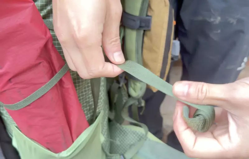これは好みの問題だと思いますが、ストラップの先端に取り付けられたベルクロテープで余ったストラップをくるくると巻きつけるような形で短くすることができます。実際に登山で使っているとこのベルクロテープが剥がれてまとめていたストラップが解放され、ストラップがだらりとしてしまうことが何度かありました。最終的にはストラップをまとめるのが面倒になりそのまま放置していましたが、歩いているとストラップが長いのでぶらぶらとして気になることもあり煩わしいと感じました。