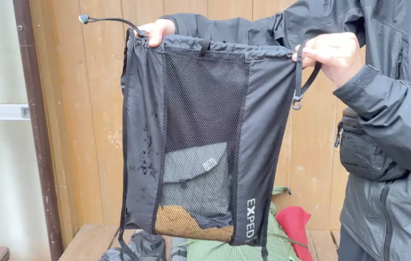 EXPEDのFlash pack pocketを使用すれば、フロントポケットを追加することができます。このポケットは簡単にザックに装着することができ、さらにはPUコーティングのナイロンを使用した耐水性がある面と、通気性の良いメッシュ面があり、装着方法を自由に決めることができます。耐水性がある面を表にすれば、小雨程度の雨で中に入れたものが濡れづらくなるし、メッシュ面を表にすればポケットの中に入れたものが分かりやすくなります。
