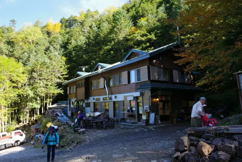 桜平登山口から約30分ほど、夏沢鉱泉は標高2,060メートルに位置する秘湯です。温泉は美肌効果があり、体が温まりやすいとのこと。
