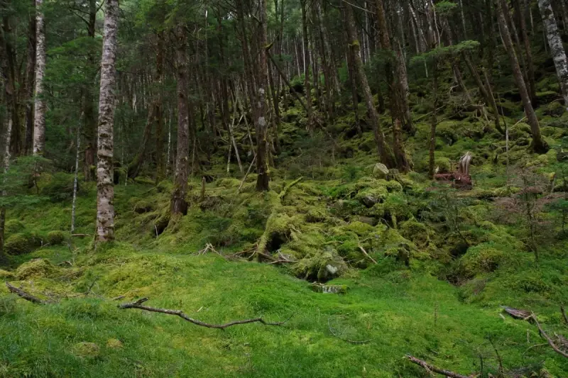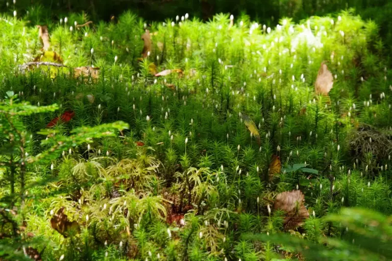 八ヶ岳山麓は苔が多い印象ですがここも例外ではなく。生育に適した湿度、土壌薄く根の浅い苔が他の植物と競争しやすい環境。さらに針葉樹林が多く落葉が少ないため、日光が地面に届きやすいことも苔の繁殖に適しています。これらの条件から、苔が豊富に生育する理想的な場所となっています。