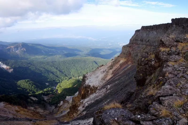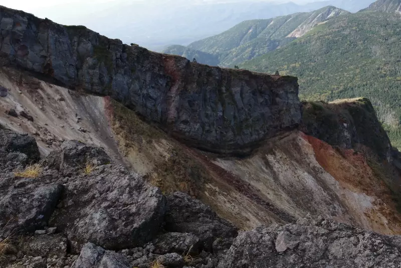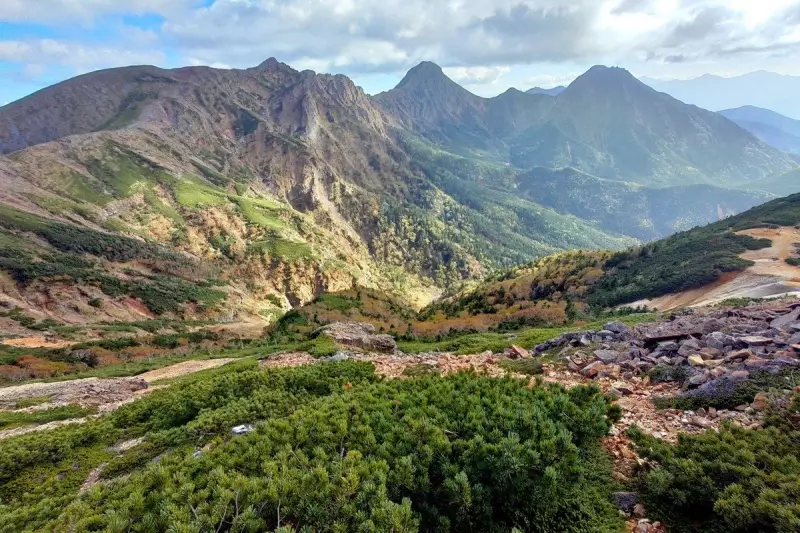 硫黄岳の山頂は広々とした平坦な地形が特徴で、まるで大自然の展望台のように360度のパノラマビュー。北側に広がる断崖絶壁は、まるで大地が裂けたかのような壮大な景観を見せ、自然の力強さを感じます。この絶景と絶壁のコントラストが、硫黄岳の山頂を特別な場所にしています。