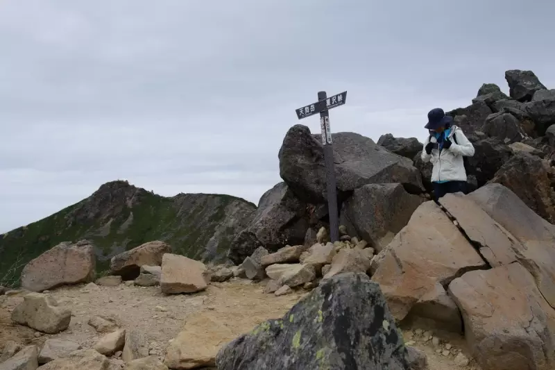 傾斜緩く散歩道のような登山道を行くこと1時間弱、根石岳(標高2,603m)が見えてきます。