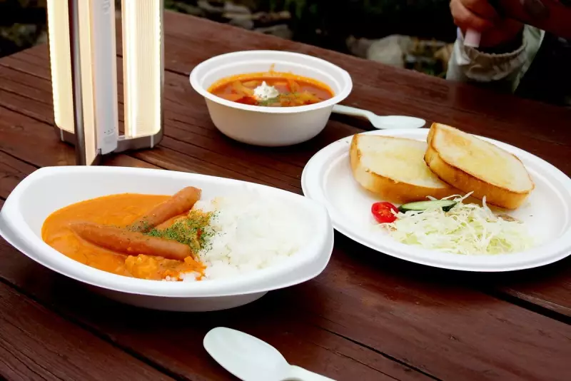 清々しい空気の中での食事は格別と言いたいとこでしたが、日が落ちると急激に気温低下、寒さが身に染みてきました。ここで問題発生!防寒用のダウンジャケットとパンツを持ってきたつもりが、なんと娘の物を間違えて持ってきてしまう大失態。羽織ることもできず冷気の中で食事を。ちな、パートナーの防寒は完璧でした。