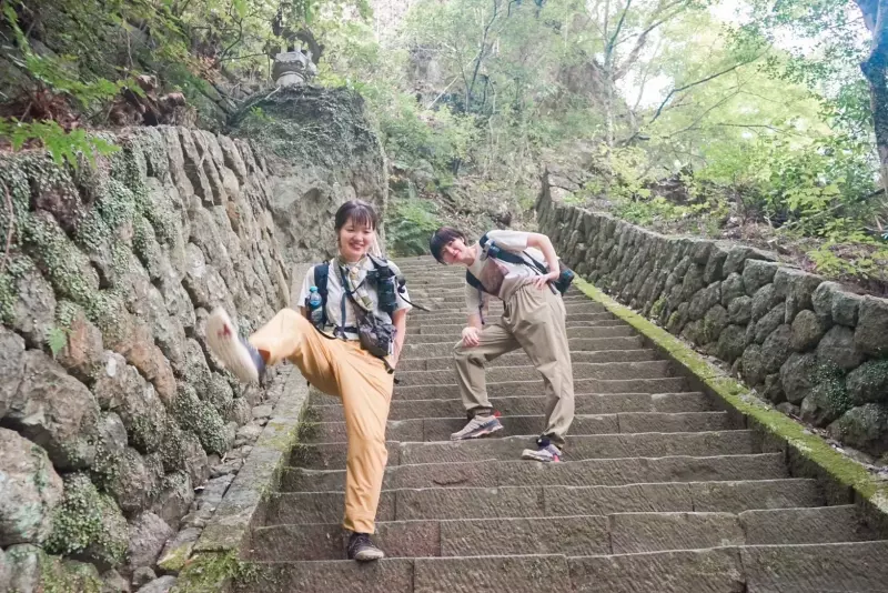 階段1400段を登ったところで、展望台があった。ありちゃんが「あれが千寿峰でね〜!」と解説してくれるから、へぇ〜!詳しいね!と振り向いたら、思いっきり地図を見ながら解説していて笑った。休憩のタイミングでリョータくんがトイレ行く、って言った時、ありちゃんが「リョータくんトイレ大好きだから」と言ったらジュンが「わかる〜。私もトイレ大好き」と言っていて、ここ最近聞いた共感の中で一番意味わかんなくて笑った。