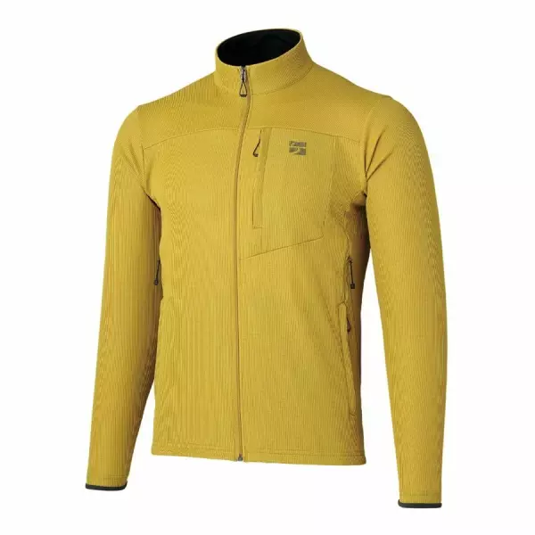 凹凸のあるグリッド構造で、保温性と通気性、伸縮性に優れたミドルレイヤーです。表面は耐摩耗性があるため、岩場の多い登山道でアウターとして着用することもできます。また、撥水加工も施されているため、アウターとして着用している時に、急な降雨や強風があっても安心です。状況の変わりやすい山での着用シーンが広い、汎用性の高い一着です。