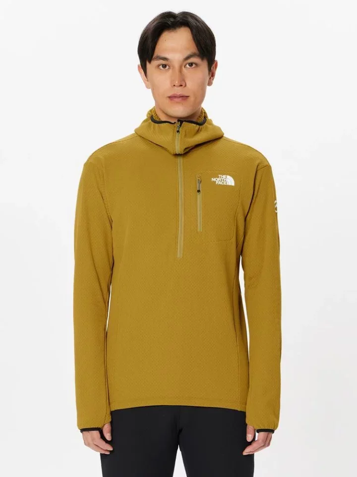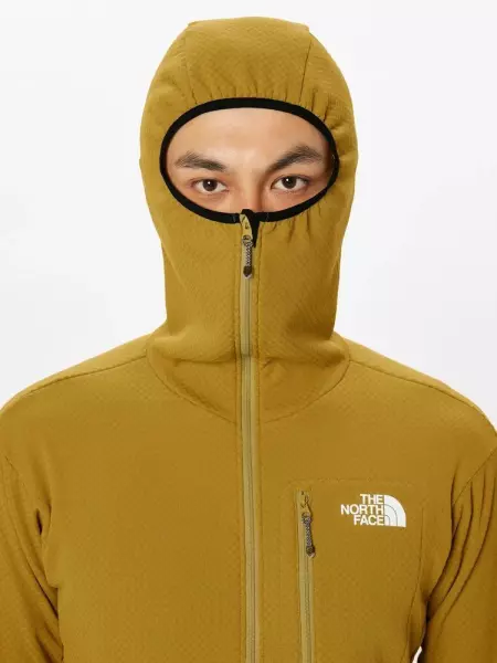 バラクラバ仕様のフードが付いたプルオーバータイプのミドルレイヤーです。柔らかな薄手のグリッドフリースで保温性と通気性、速乾性に優れています。また、ストレッチ性が高く、耐摩耗性もあるため、トレイルランニングなど激しいアクティビティにも対応します。冬山登山や高所登山の行動着におすすめです。