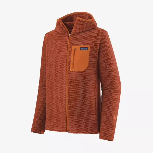 R1シリーズの中で最も通気性が高く、速乾性を備えた軽量フリースです。ジグザグに編まれた素材が特徴的で、通気性、保温性、ストレッチ性に優れ、行動中に着続けても動きやすく、汗をかきにくいため、バックカントリースキーや雪山登山など厳冬期の激しいアクティビティに最適です。フードは、ヘルメットやアウターのフードの下に収まる設計で保温性を高めてくれます。