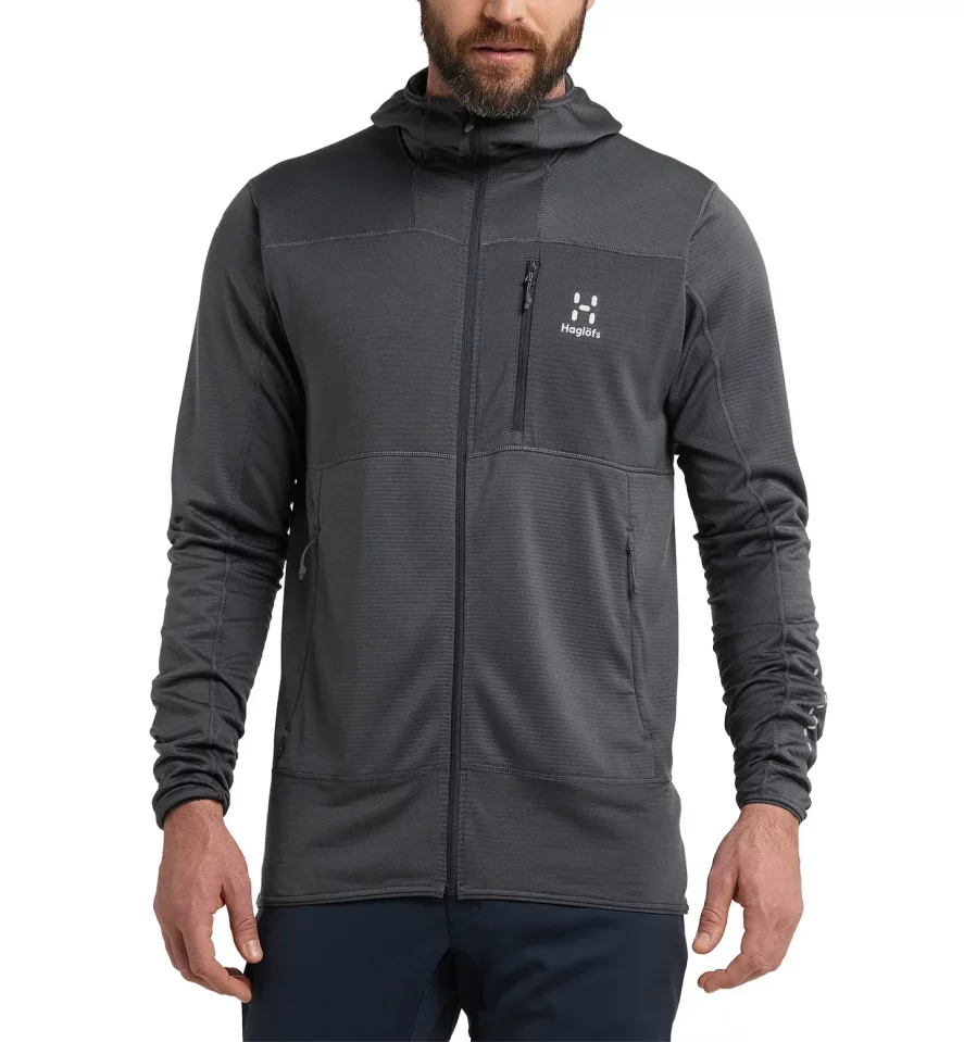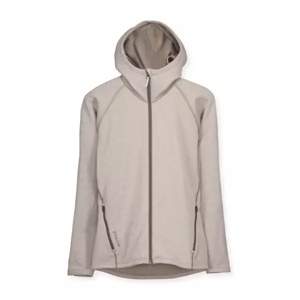高機能素材であるポーラテックパワーグリッドを採用した、軽量薄手で保温性と通気性に優れたフード付きフリースジャケットです。吸湿放散性と伸縮性が高く、立体裁断で動きやすいため、運動量の多いアクティビティのミドルレイヤーとしておすすめです。フードも伸縮性があり首元を覆うデザインのため、寒い時にかぶれば保温効果があります。