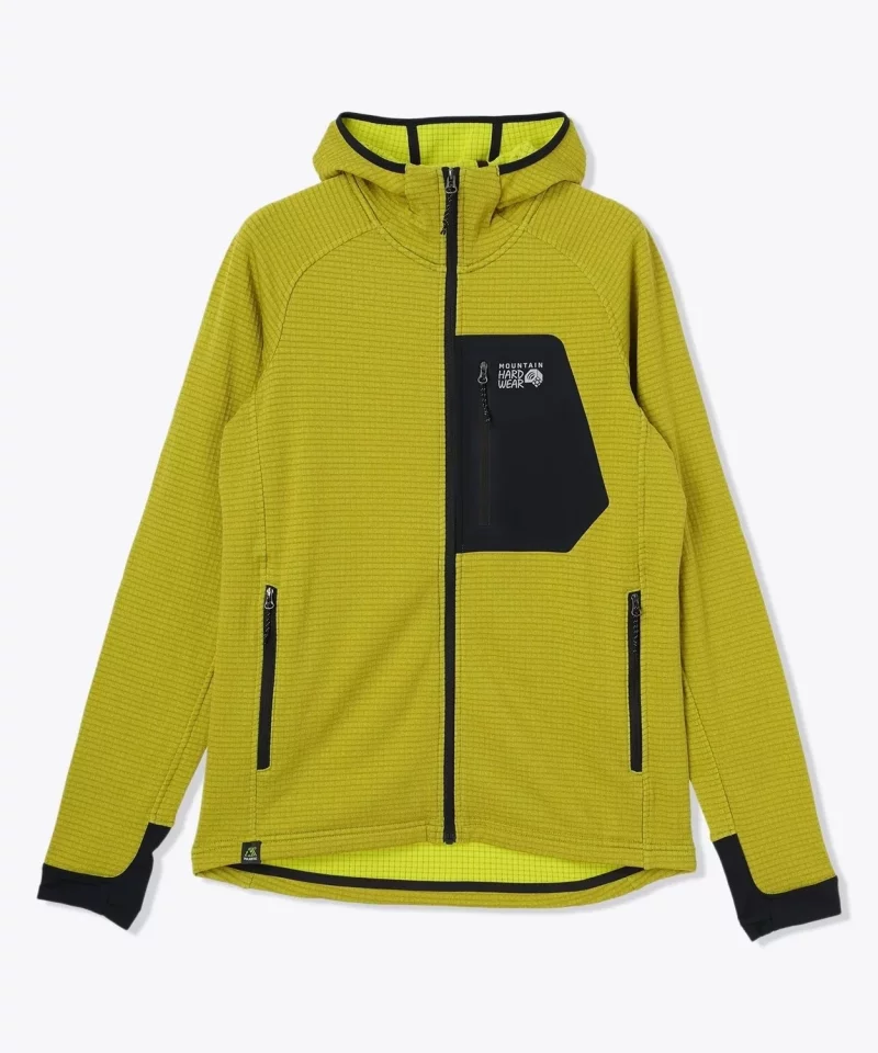 マムートの定番であるアコンカグア ミッドレイヤー ジャケットを、より軽量コンパクトにしてフードを付けたモデルです。高機能素材であるポーラテックパワーグリッドを採用し、通気性、吸湿速乾性、伸縮性に優れ、適度な保温性があります。
