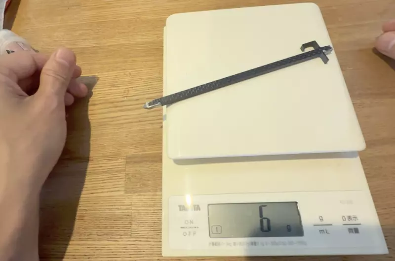 カーボンファイバー製の軽量且つ剛性の高いテントペグです。スペックは重量:6.2g、長さ:15.5cm、厚み:0.4×0.5cmの円柱形で、地面に刺した時に抜けづらくテントを固定するのに非常におすすめです。地面に刺さらない時はガイラインをくくりつけて上から石などを置いて固定することになると思いますが、この時も円柱形なので、石の上に置いた時に動きづらいのも特徴です。