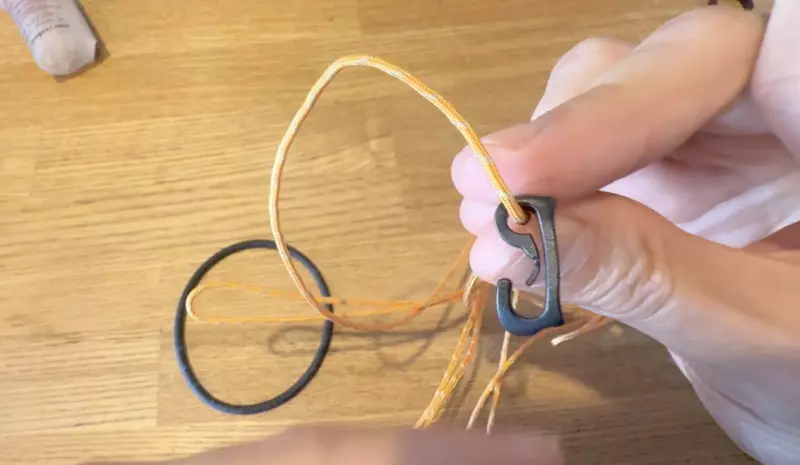 髪留めのためのゴム紐をクリップフックに引っ掛けて、その後乾かしたいものをゴム紐に通して、引っ掛ければOKです。タオルをゴム紐に通せば、タオルをザックに引っ掛けて行動することも簡単です。色々な使い方ができると思うので1つあると便利です。こちらも1つから山旅ショップで購入できます。
