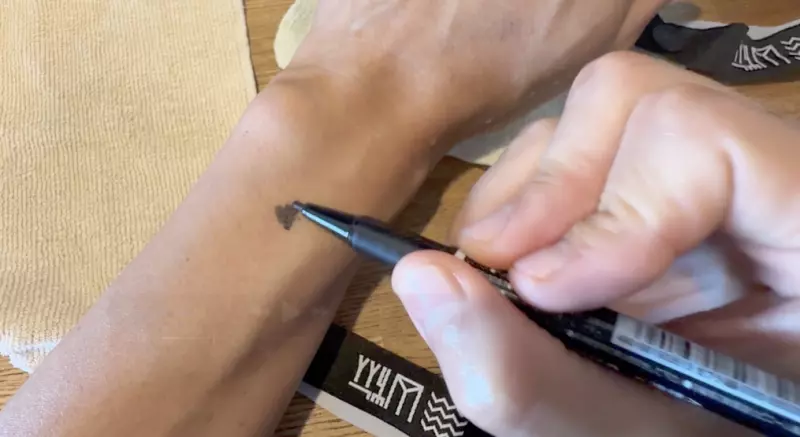 例えば油性のマジックで手に書いて、少し時間を経過してタオルで拭くテストをしてみましょう。見ての通り力を入れずとも綺麗に落ちていることがわかると思います。テント場や山小屋に到着したときに汗によってベタついた気持ちの悪い体を、このタオルを使って拭けば非常に気持ちよくその後を過ごすことができます。