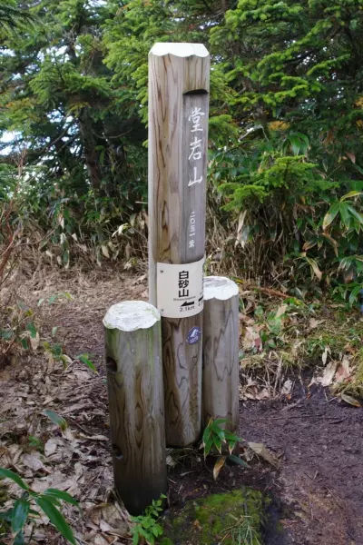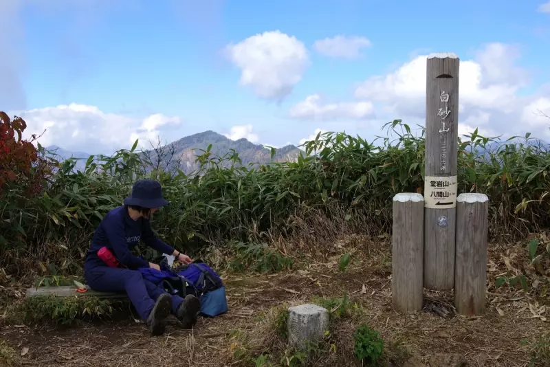 堂岩山から1.5時間、登山口から4時間弱。白砂山山頂に到着。