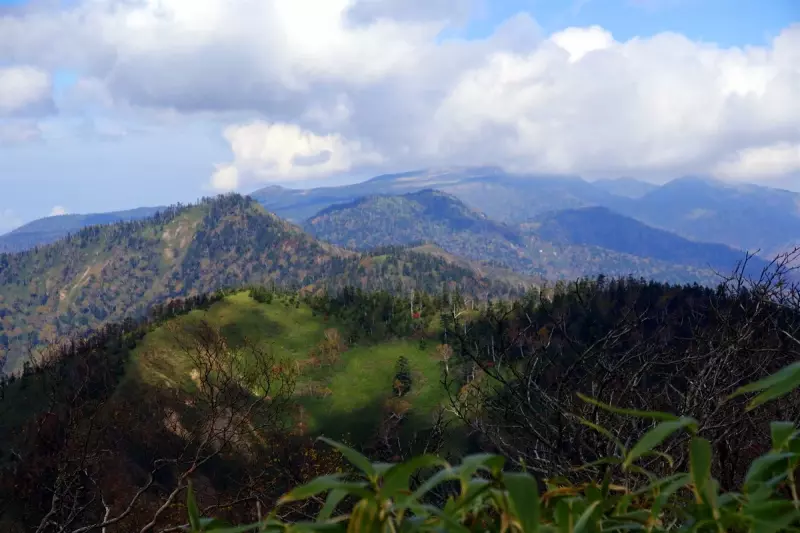 南を見れば伸びやかな山肌に集う素晴らしい秋の華。