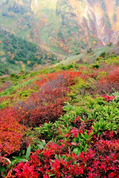 北面を見れば荒々しい山肌を這う素晴らしい秋の華。