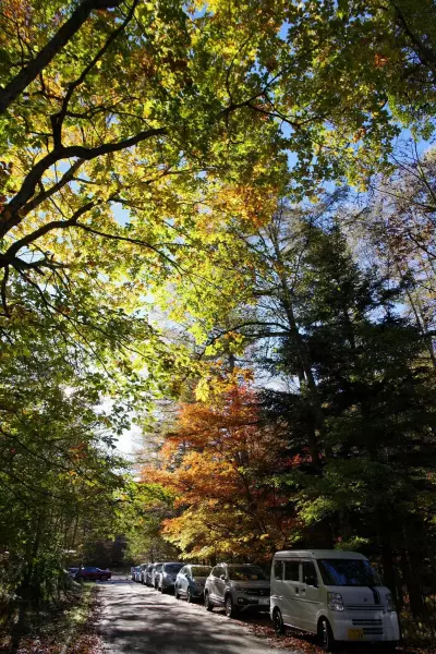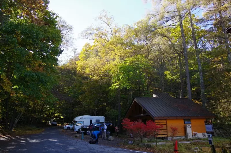 10月中旬を過ぎた週末、7時の瑞牆山 県営無料駐車場はすでに多くの車で埋まり路肩までみっちり、人気の高さを実感。早朝からの出発がおすすめです。そんな喧噪の駐車場ですら美しく見える最高の秋の日、登山への期待値高まります。