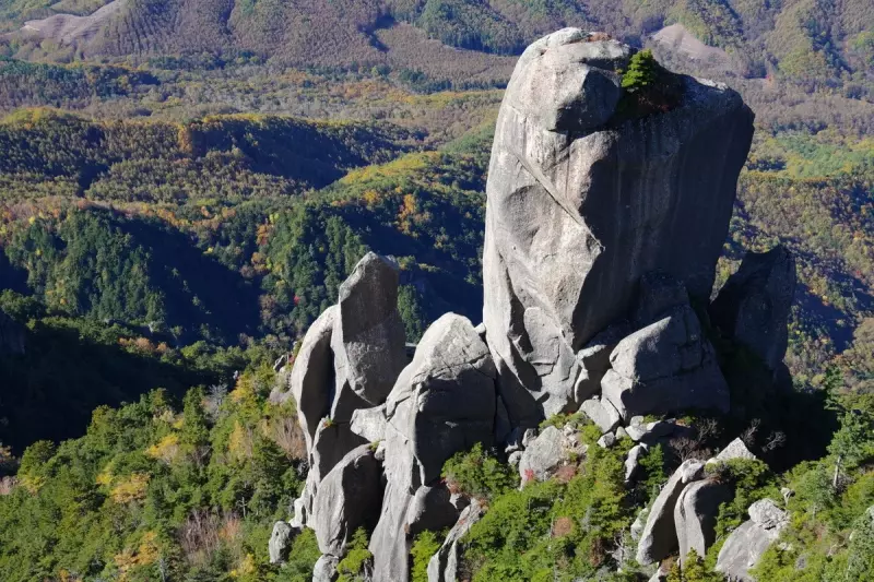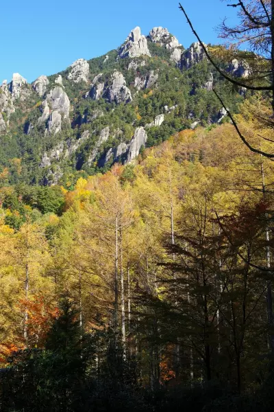 ■瑞牆山:標高2,230mの岩峰が黄葉に染まる