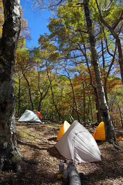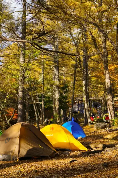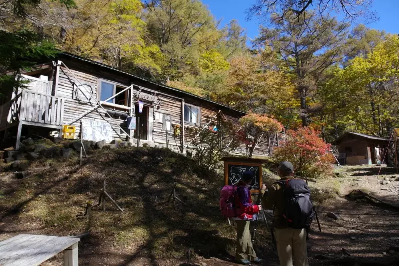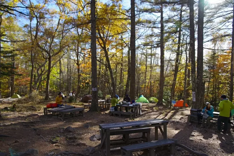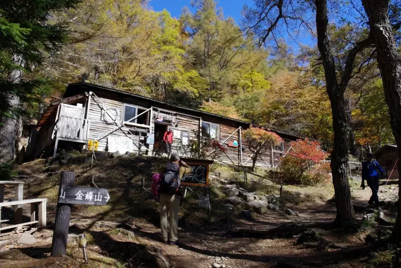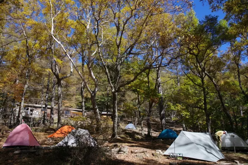 併設のテント場はコメツガやシラビソといった亜高山帯ならではの針葉樹が茂り、秋にはカラマツの明るい黄葉とナナカマドの赤が場を彩ります。前述の水場に清潔なトイレと、安心してテント泊を楽しむことができます。瑞牆山を登る際は、ぜひ富士見平小屋に立ち寄ってください。豊かな自然の中で心身ともにリフレッシュできます。