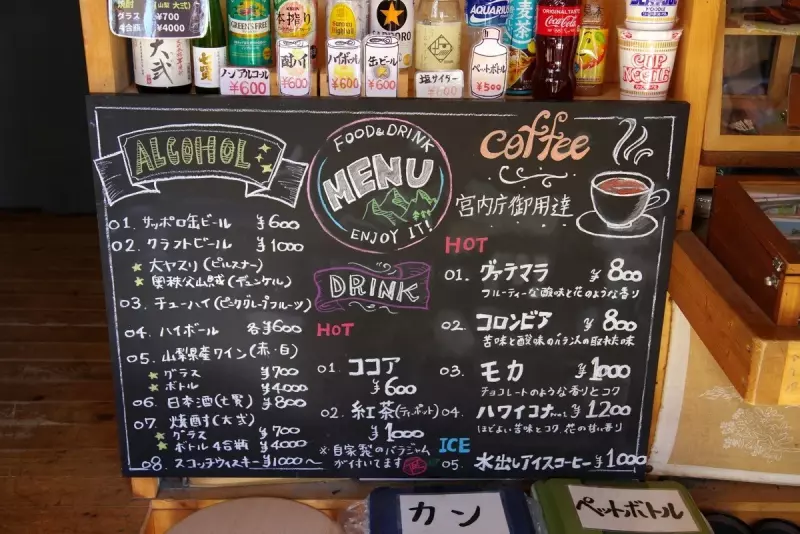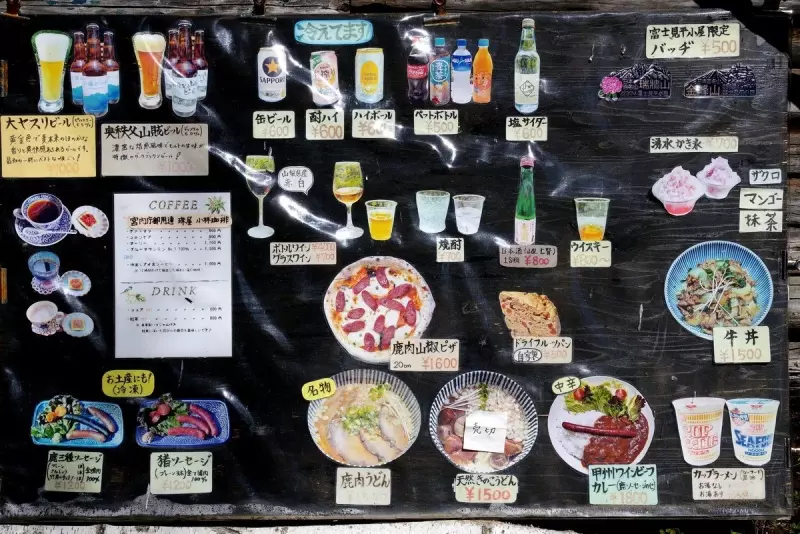 駐車場から一時間弱、富士見平小屋はもてなしと豊かな体験を提供してくれる山小屋です。小屋から1分ほどの場所には環境省選定「平成の名水百選」の湧水があり、夏場でも冷たい澄んだ水が渇きを潤してくれます。小屋で提供される食事は地元山梨の食材を使用した手作り料理。名水の珈琲は12時間かけて抽出したこだわりの水出し。夜になると無数の美しいランプが小屋内を照らす心地良い空間。体を休めながら、暖かい光に包まれる時間は、まさに至福のひと時。