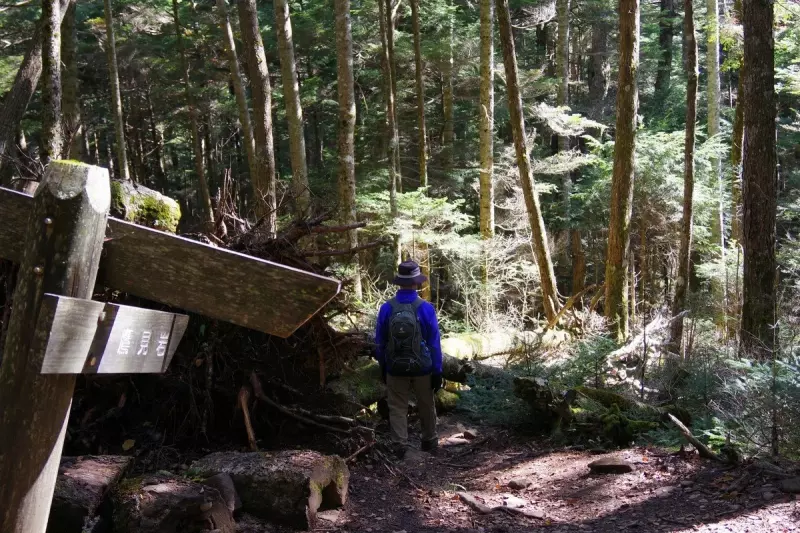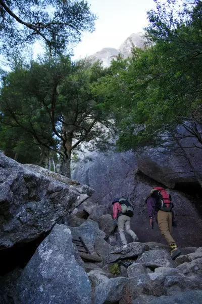 幕営後は鷹見岩を目指します。鷹見岩は瑞牆山と金峰山を結ぶ稜線上に位置し、雄大なパノラマを楽しめる、知る人ぞ知るスポット。富士見平小屋から鷹見岩へ向かうルートは、道幅は広く緩やかな登りが続きます。