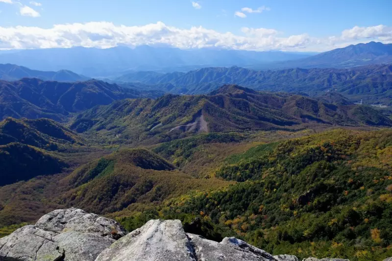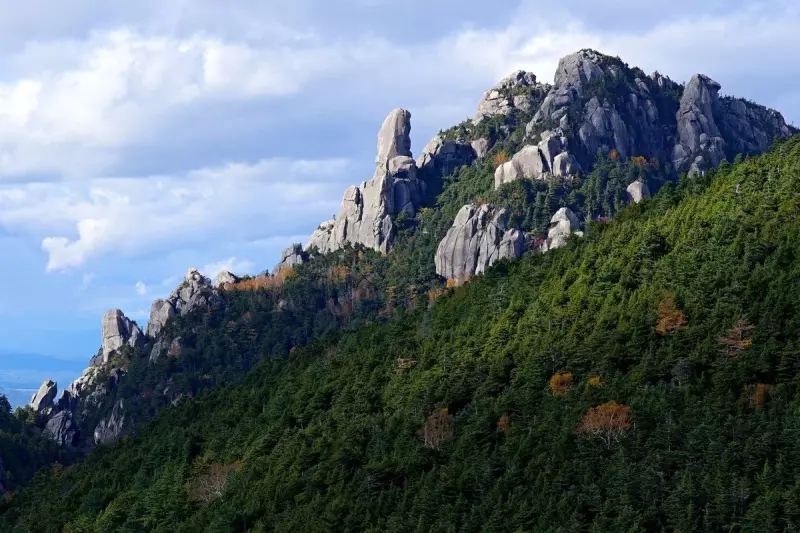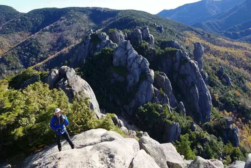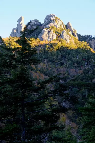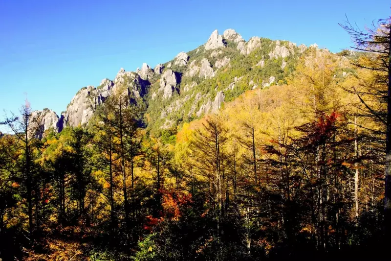 瑞牆山は、標高2,230mの岩峰が特徴的な山で、日本百名山の一つとして知られています。山梨県北杜市に位置し奥秩父山塊の主脈、その雄大な姿は多くの人を魅了します。全山が花崗岩で構成され、無数の岩峰が天に向かってそびえ立つ、その独特な景観は自然が作り出した芸術作品。秋の瑞牆山は紅葉の名所として知られ、カラマツの黄金色が山全体を包み込む様子は圧巻。富士見平小屋周辺は、特に紅葉が美しく絵画のような風景が広がります。