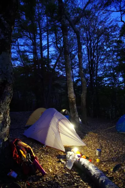 ■富士見平小屋:ランプの癒しと山梨の幸、充実のテント場