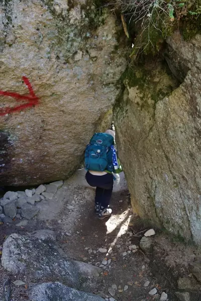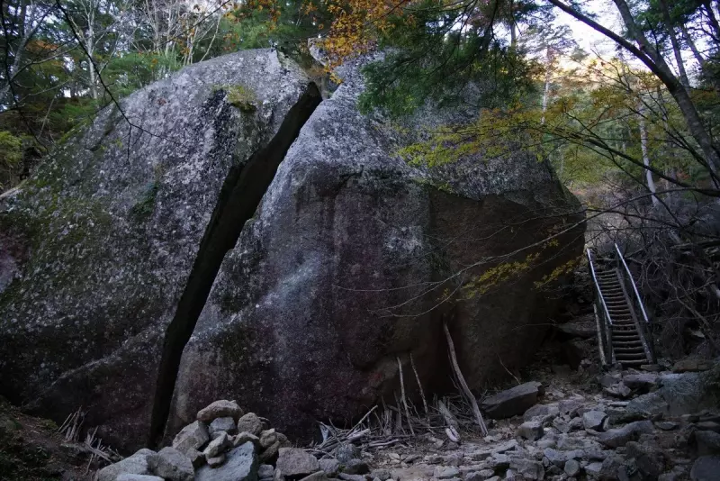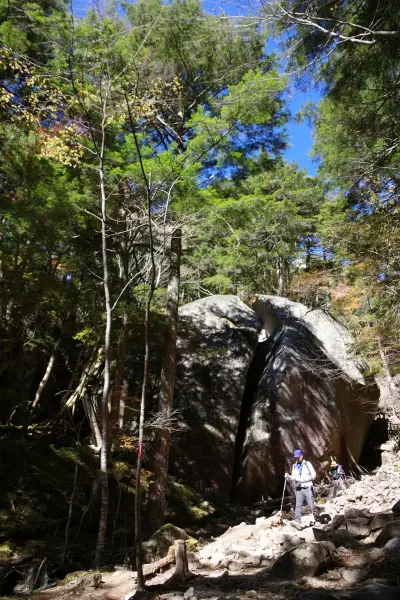 大きな岩がパックリと二つに割れた桃太郎岩からは岩場の登山道となっていきます。
