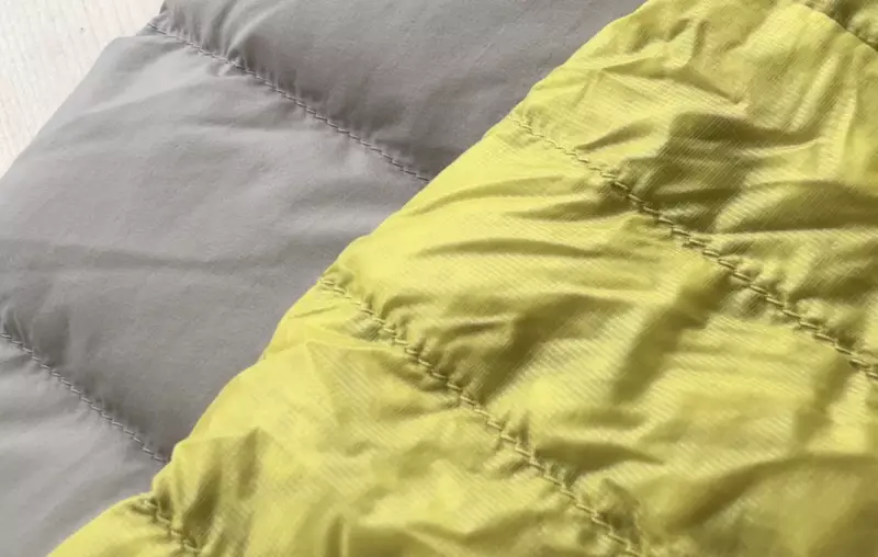 登山用のダウンジャケットとは異なり表生地の素材にはリップストップが施されておりません。なのでもし破れてしまった時に大きく引き裂かれてしまい、ダウンがたくさん飛び出てしまう懸念点が挙げられます。表生地のデニール数などはスペック上を書かれていませんが触った感じ15〜20デニール前後のように感じます。ですのである程度耐久性の高さがあり安心感はあります。