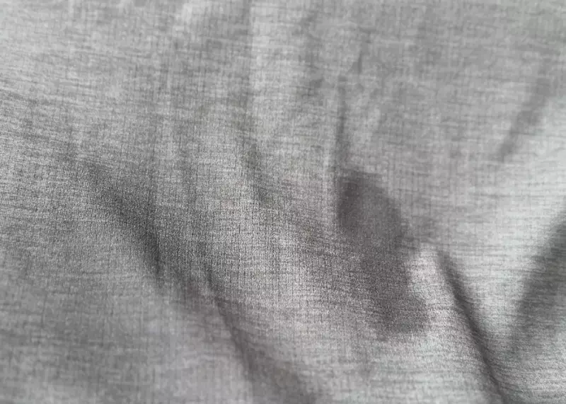 速乾性に優れている点については、汗を吸った際に素早く拡散し、素材自体がメッシュ素材なので、常に通気をして乾きを促進します。水を垂らして数分間放置した状態の動画を見てもわかる通り、非常に拡散能力に優れ、その後の乾きの速さもメッシュ素材ならではです。