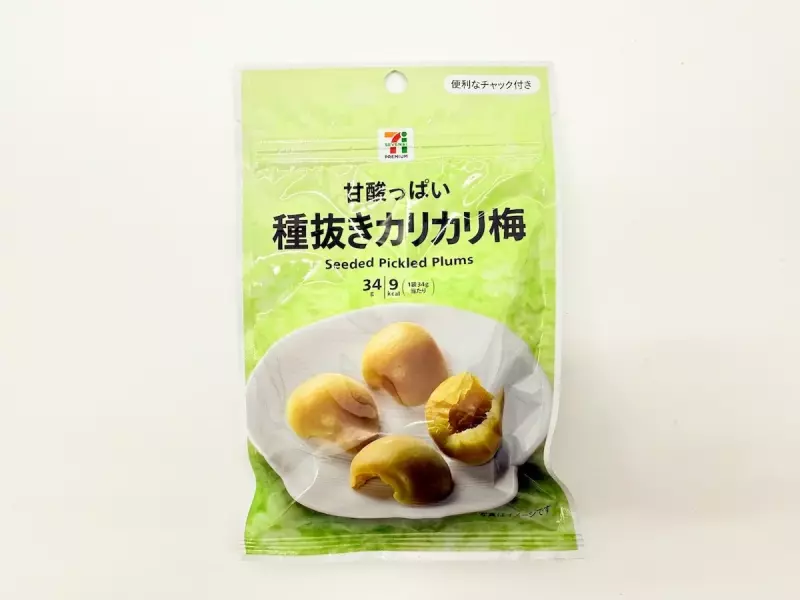 セブンイレブンの甘酸っぱい種抜きカリカリ梅より、味がしっかりしているタイプです。セブンイレブンは約0.7g食塩相当量が多いので、汗をかくトレイルランニングなどではローソンの手割り梅を選ぶことが多いです。セブンイレブンとも壮関という会社のもので、使っている梅はおそらく同じものだと思われます。