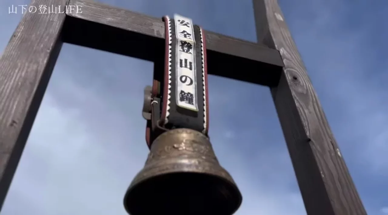 リフトを降りたら天神峠で安全登山の鐘を鳴らしいざスタート!