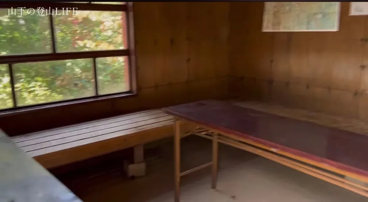 熊穴沢避難小屋の室内は綺麗に整理させれおり、ベンチもあるので途中休憩には良い所。