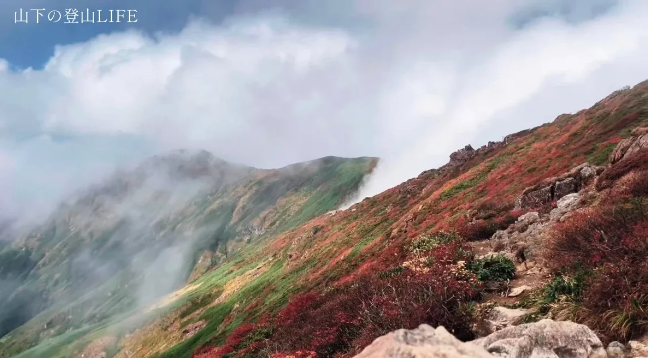 色づき始めた紅葉の赤と雲間から見え隠れするピークが最高にカッコよかったです!