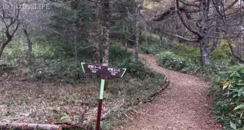 ヒュッテ入笠から山頂の中間地点で岩場コースと迂回コースの分岐があります。