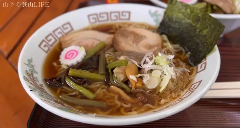 山彦荘の山菜ラーメン&そばドラ(皮にそば粉を使ったどら焼き)