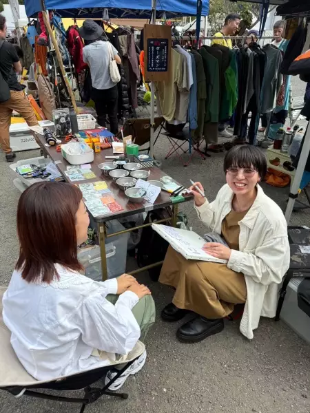 アソビ姉さんも来てくれた。前日一緒に山に登っているので、二日連続で会えて嬉しかったし、美味しいドーナツを差し入れでくれたし、ステッカー買ってくれたし、似顔絵も描かせてくれた。本当に本当に嬉しい。