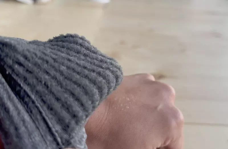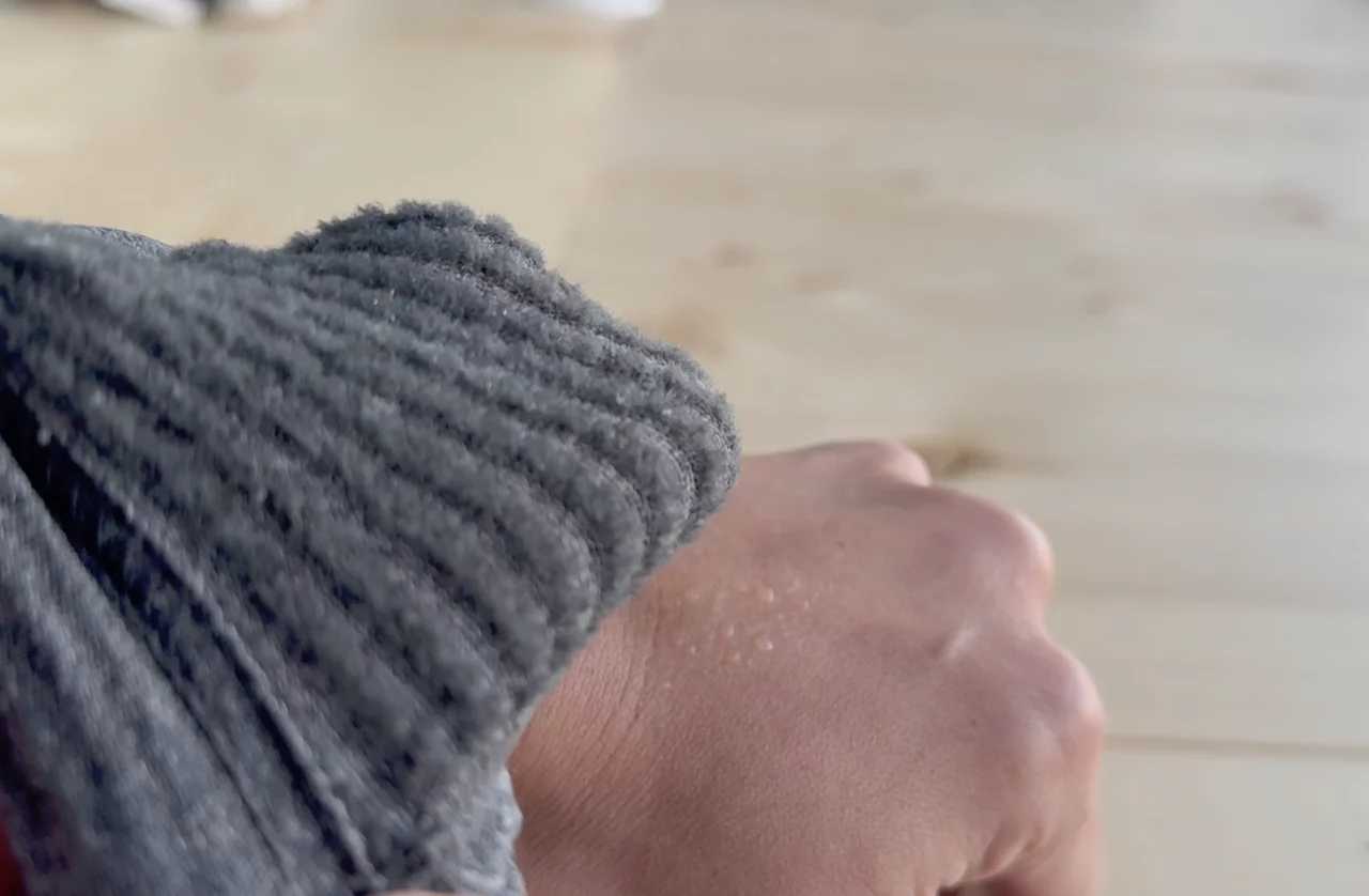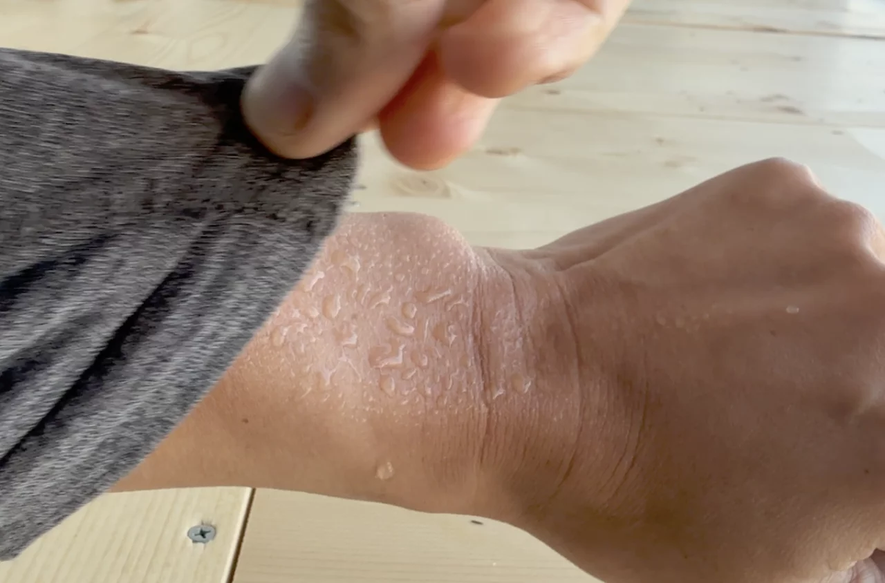 ポーラテックのパワーウールの肌面に施された凹凸がすごいと感じることが多く、まず1つに吸湿性が高いので、蒸れ感が非常に少ないです。これはメリノウールのベースレイヤーを着用している人はよくわかると思います。