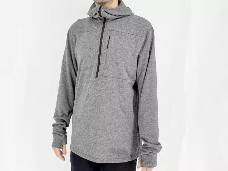 このような着用方法ができるのでオールシーズン使えるベースレイヤーです。特に高所登山に快適だと思うことが多く、冷たい風に当たればしっかりと防寒することができ、朝、昼、晩と気温差が激しい状況においても1枚で難なく対応して発汗量を抑えることもできます。