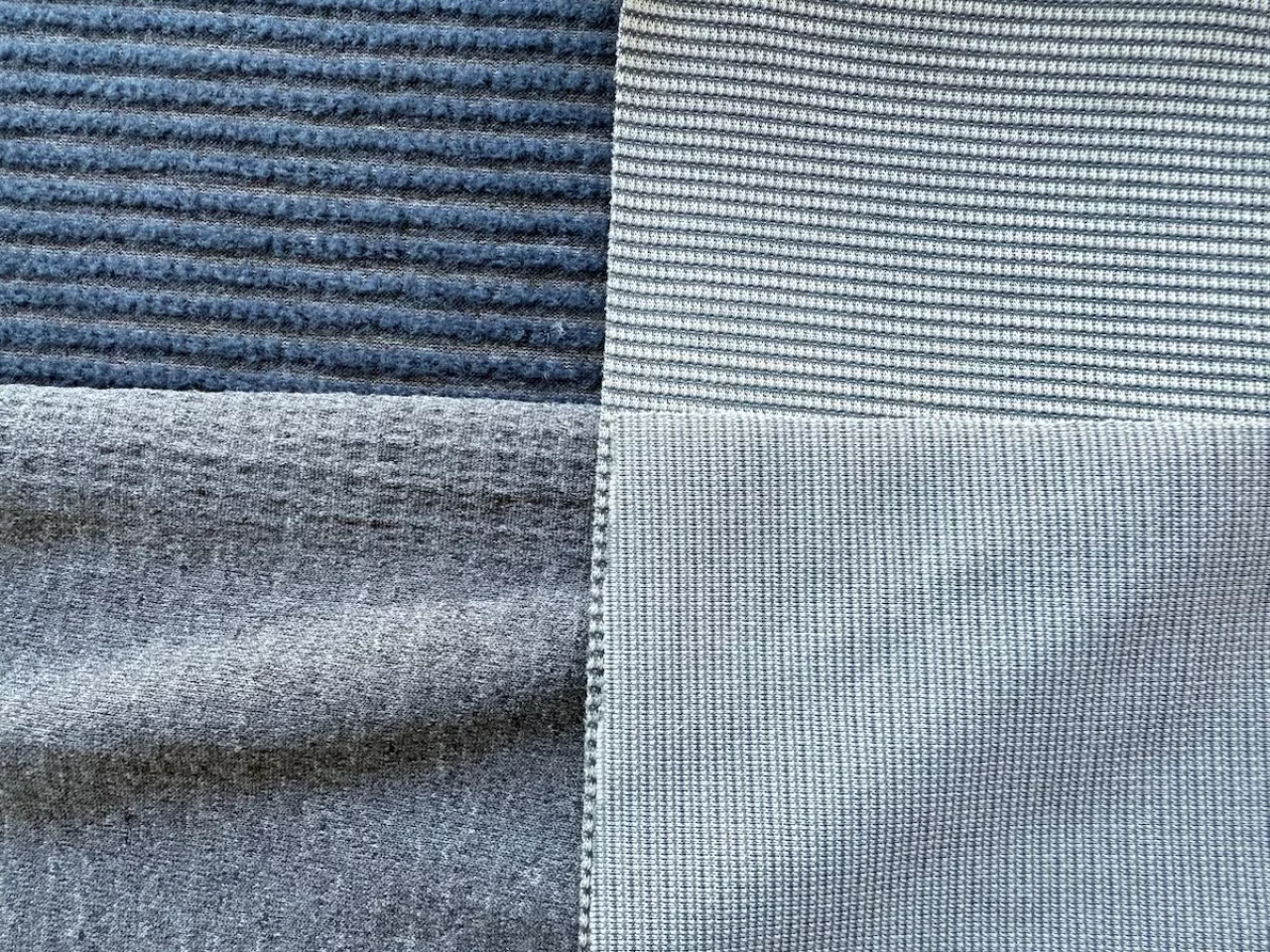 メリノウールと合繊繊維を混紡させるのではなく、双方の素材の機能性が十分に発揮できるように体に当たる側の凹凸部分にはメリノウールが使用され、表面のフラットな部分に合繊繊維が使用されています。