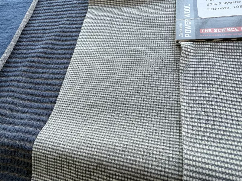 ポーラテックのパワーウールは、同社のパワーグリッドと同様、凸部分で汗を吸い、素早く汗を表の生地へ移動させ、その後拡散して汗が乾く時に、濡れた部分が直接肌に触れていないので気化熱が奪われづらく、肌をドライに保ちます。だから凹んだ部分がメッシュなので通気をして、冷たい風が体に触れても、余計な熱を取り除くだけで肌が冷たくなりづらいという特徴があります。