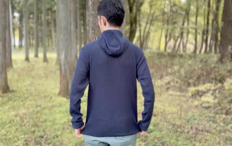 少し肌寒い環境でペースフローフーディ1枚だと、スースーと通気をするので寒く感じます。だから登山始めの体が温まってていない時は上にウィンドシェルなどを羽織ると途端に暖かくなり快適です。そしてハイクアップを続けて汗ばんできたら、ウィンドシェルを脱ぐ、すると高い通気性でこもった熱を外に排出してくれます。