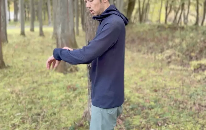 時間が経ち日差しが出てくるとポカポカとした陽気に変わり、ウィンドシェルを脱いだ状態で行動していても背中や脇に汗をかきます。しかしながら肌で実感ができるほど、素早く汗を吸い、濡れているという感覚がとにかく少ないことに驚きです。