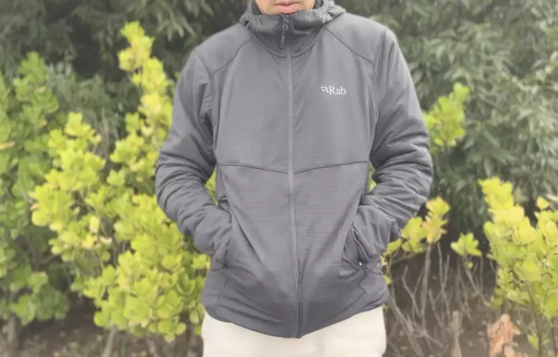 今回紹介するRabのエボリュートフーディの最も特徴的なのがプリマロフトの革新的素材エボルブ・アクティブ・インサレーションを使用している点です。このインサレーションはポ゚ーラテックのアルファダイレクトと非常に似た特徴を備えており、通気性と保温性のバランスに優れており、ハイクアップ時にジャケットの下で湿気がこもりにくく、程よい保温性によって汗冷えがしにくい生地構造を備えています。