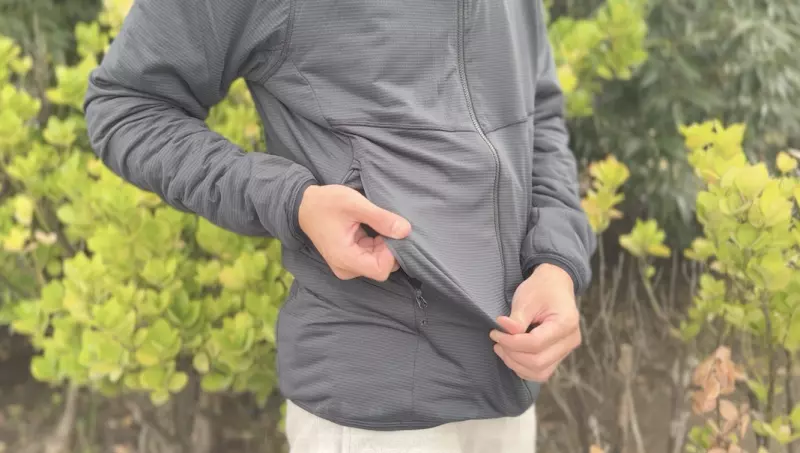 防風性に特徴のあるアクティブインサレーションはミドルレイヤーとして着用する以外に、3シーズンではアウターとしても使える汎用性の高さが魅力の一つです。そして登山をしていてアウターとして着用する時に欲しいと感じるのがハンドウォーマーポケットとフードです。