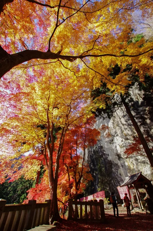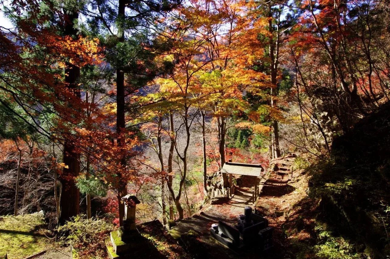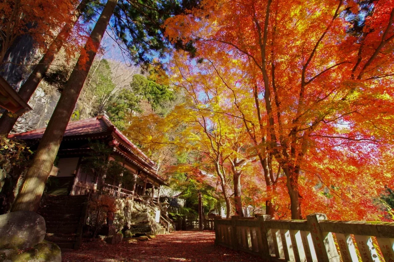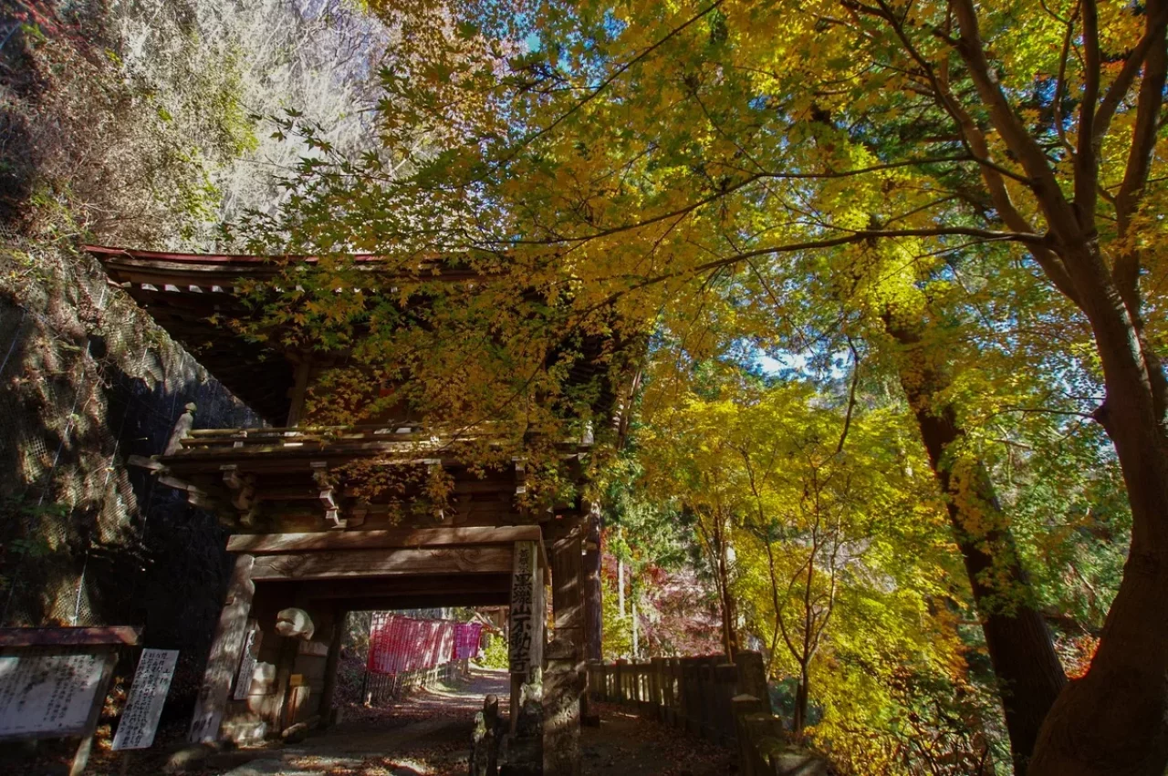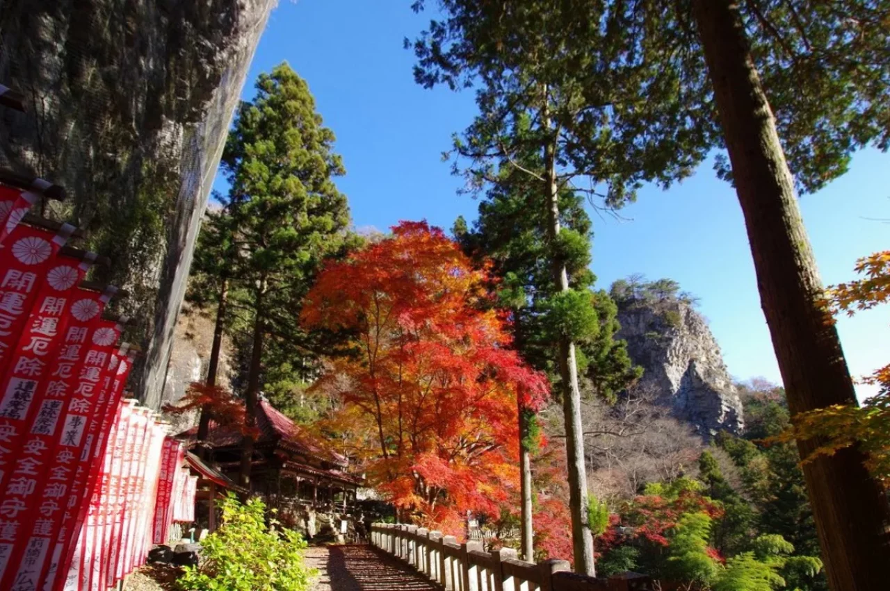 黒瀧山に抱かれる黒瀧山不動寺。上州の奥ノ院とも称され、江戸時代徳川五代綱吉公が帰依した1675年潮音禅師によって中興開山され、厄除け不動の霊場として千余年の歴史を有します。四季折々の美しい風景で訪れる人を魅了しますが、特に秋には、境内や登山道が紅葉で染まり、絵画のような絶景が広がります。境内には、本尊の金躰不動明王像をはじめ、県指定天然記念物の大杉や、霊験あらたかな黒瀧泉など、小さな山寺ながら見どころ満載です。