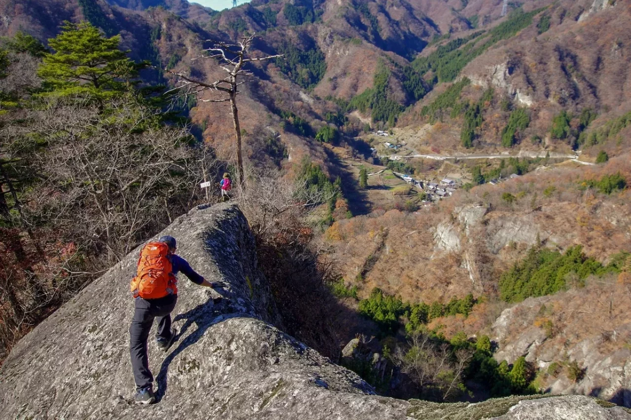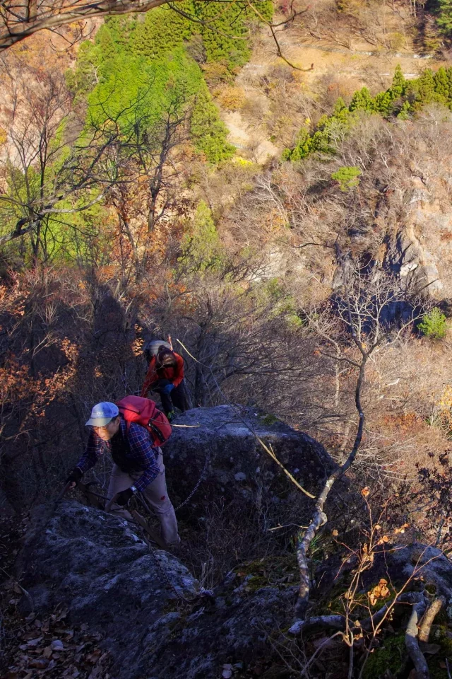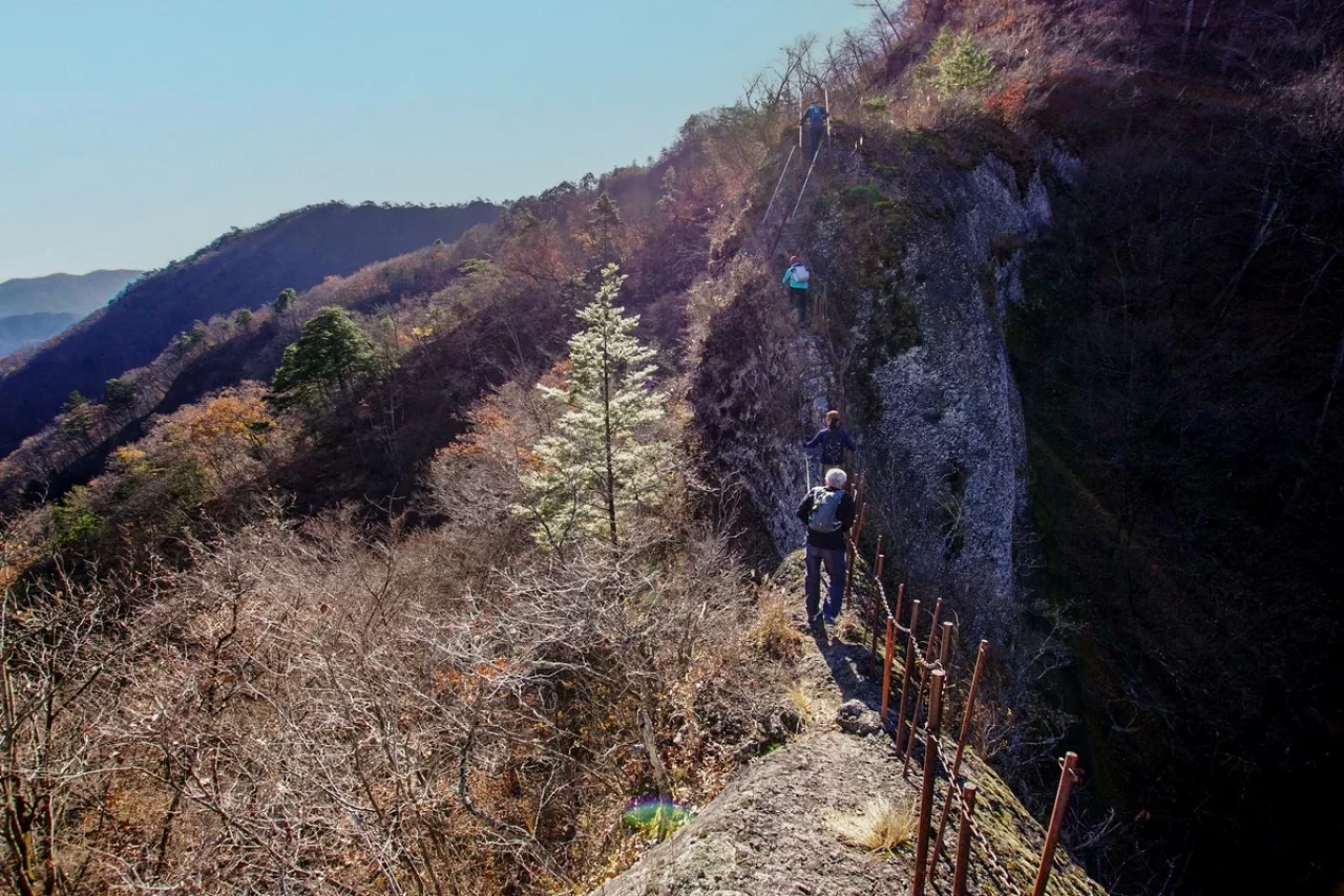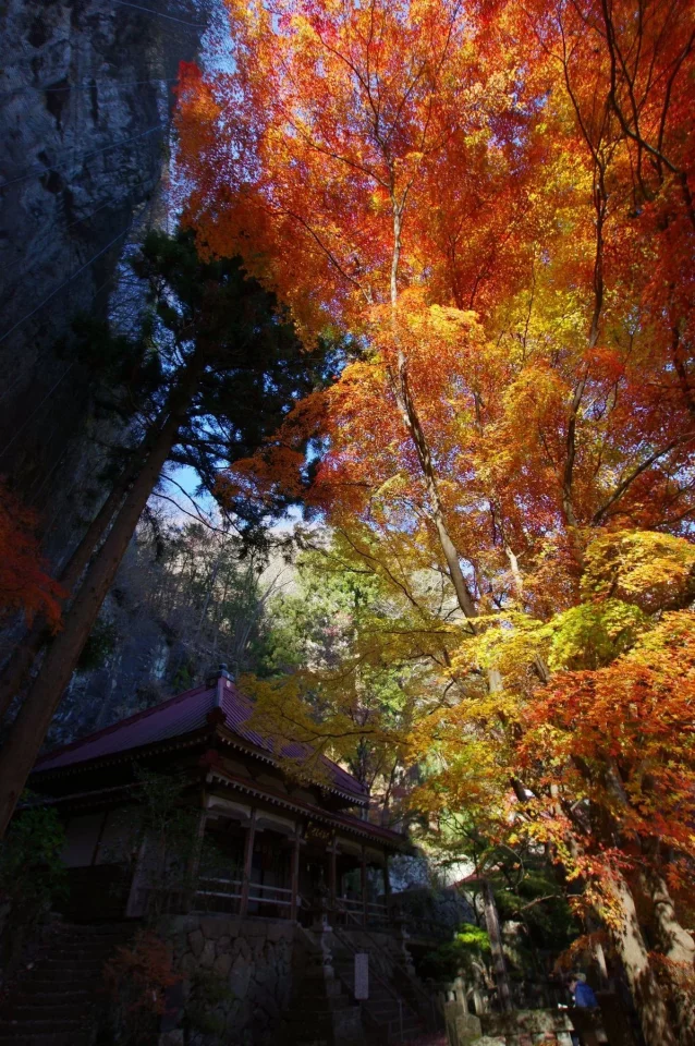 群馬県は南牧村、千余年の歴史重ねた不動寺の霊山。そこは展望良い観音岩、九十九谷の岩壁、馬ノ背渡り、鷹ノ巣山の絶壁。規模は小さいながら山の魅力と程ほどのリスクが凝縮された盆栽の趣き。何より不動寺の歴史が醸す本物の重みに、真紅の輝きが重なる晩秋の景色には感嘆。群馬の秘境、限界集落と言われる南牧の地に麗しの宝石を見る思い。皆様に是非とも勧めしたい場所の一つ。