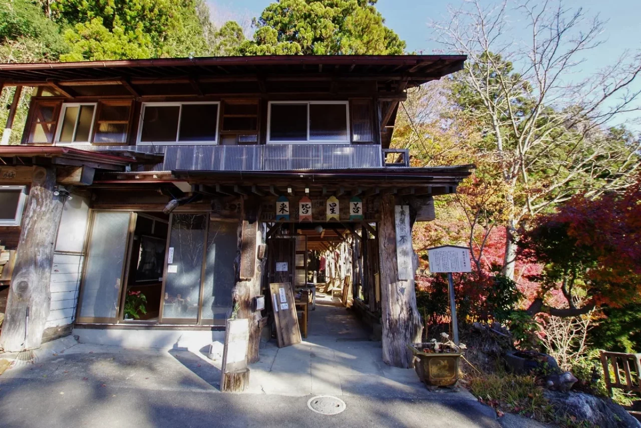 群馬県南牧村の奥深い山中に佇む星尾温泉 木の葉石の湯は、古民家を改装した小さな日帰り温泉施設です。築200年の古民家を、地元住民の手によって丁寧に再生し、昔ながらの温泉の風情を再現しています。場所は「上州のドロミテ」ともいわれる立岩の麓、黒滝山よりも南牧村最深部に位置します。