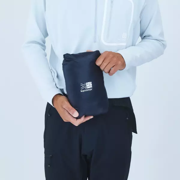 また、袖口の内側にはストレッチバンドが施され、程よくフィットするため冷気の侵入を防いでいます。裾はドローコードを絞ることで、下から吹いてくる風をシャットアウト。外側の右ポケットに収納できるコンパクトなポケッタブル仕様で携行性も優れています。